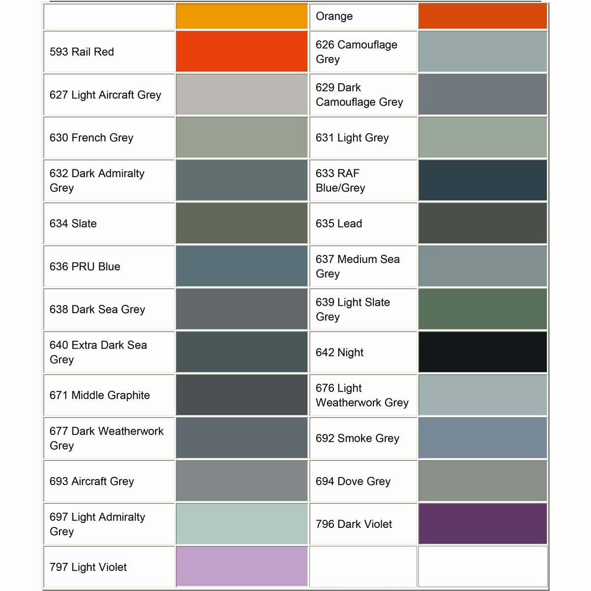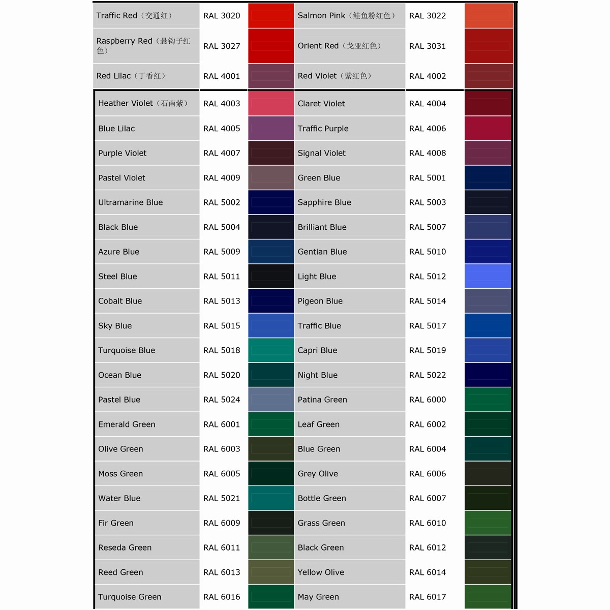 RAL COLOUR CHART